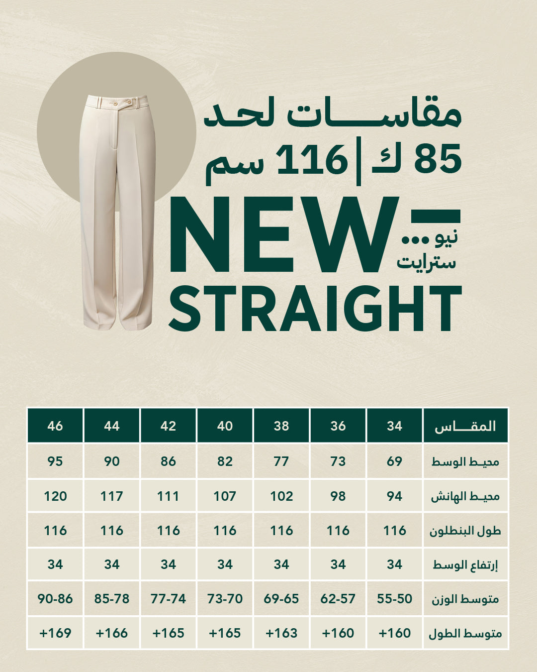 - البنطلون بييجي بطول ستاندر (116 سم) ودا بيخليه طويل جداا ومناسب اوي للبنات اللى طولها (+ 170) او للى بيحبوا ستايل البنطلون اللى مغطي الشوز بالكامل.