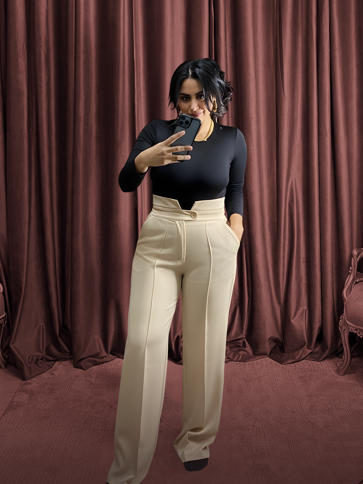 🖤 بنطلون كلاسيك دبل كمر – قصة ستريت شيك