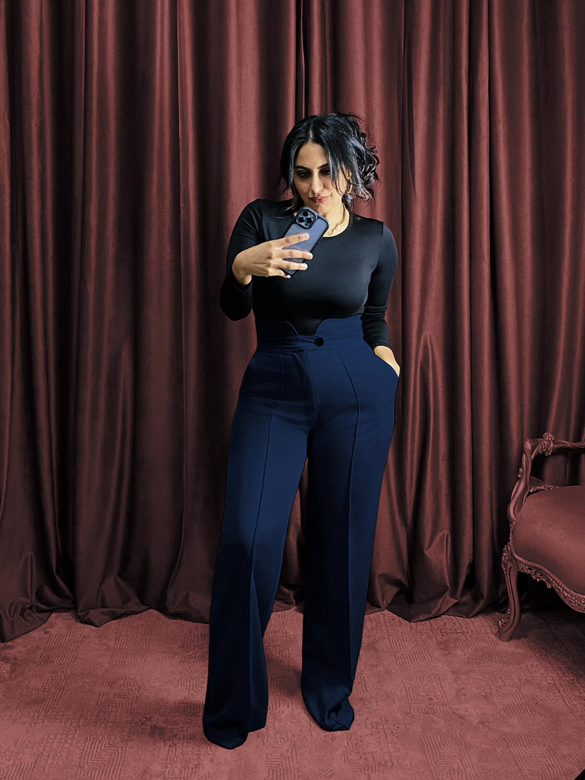 • تصميم دبل كمر مميز يضيف لمسة فخامة وشياكة لأي لوك.
